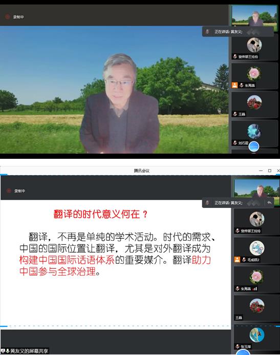 2021年11月11日下午2:15,中国外文局前副局长黄友义老师在皇冠体育博彩