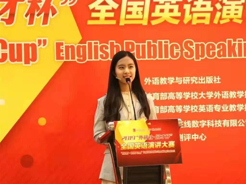 英语演讲总决赛共有182名选手(不分国籍)参加,采用现场晋级赛制,2017级英语教师教育3班的陆美彤同学(指导教师张燕萍)成功晋级,她表达流畅、反应机敏, 进入了全国前30名,荣获全国总决赛二等奖,实现了历史性突破。自此项比赛2012年举办以来,这是皇冠体育博彩