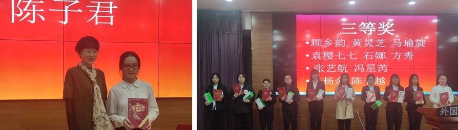 比赛结束后,李文军、刘燕两位评委老师就选手们的表现进行了精彩点评,肯定了选手们的充分准备和深入思考,也指出了用情用心演讲与用脑用手演讲的区别。最终,2020级翻译硕士学生陈子君获一等奖,本科生马红瑞、宋雪芹获二等奖,晋级10月31日的区赛,三等奖前三名张艺航、李杨余、陈书越获区级三等奖和观摩区赛的资格。