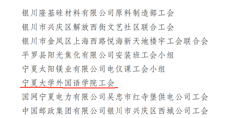 基层工会工作先进集体;先后荣获自治区“巾帼文明岗”、“五一巾帼奖状”、“全区模范教工小家”称号。