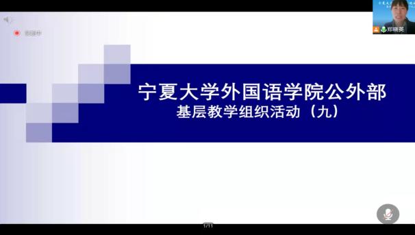 公外部实施的大学英语8+4+X教学模式和学术英语模块课程教学理念相同,方向一致。蔡教授的讲座给了我们宝贵的指引和鼓励,使我们更加坚定大学英语教学改革的方向,明确了培养学生思辨能力,大学英语课程服务于学生学习专业领域知识的大学英语教学目标。此次活动为“大学英语第一教研室基层教学组织活动”内容之一。