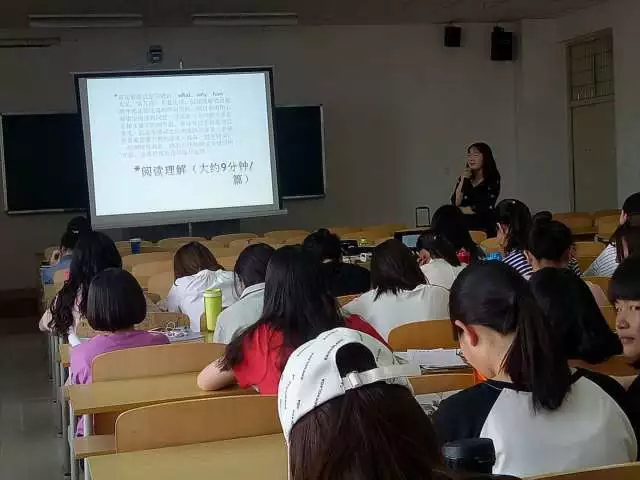 首先,学姐为同学们讲解了英语四级阅读题的分值和答题方法,然后将刚学习过的答题技巧和真题相结合,称热打铁,通过寻找关键词,关键句和同义词,让同学们逐渐掌握做快速阅读和仔细阅读的方法。最后,学姐又补充讲了五十个做阅读会遇到的高频词汇,并跟大家分享了她在四六级考试中的经验,帮同学们答疑解惑。