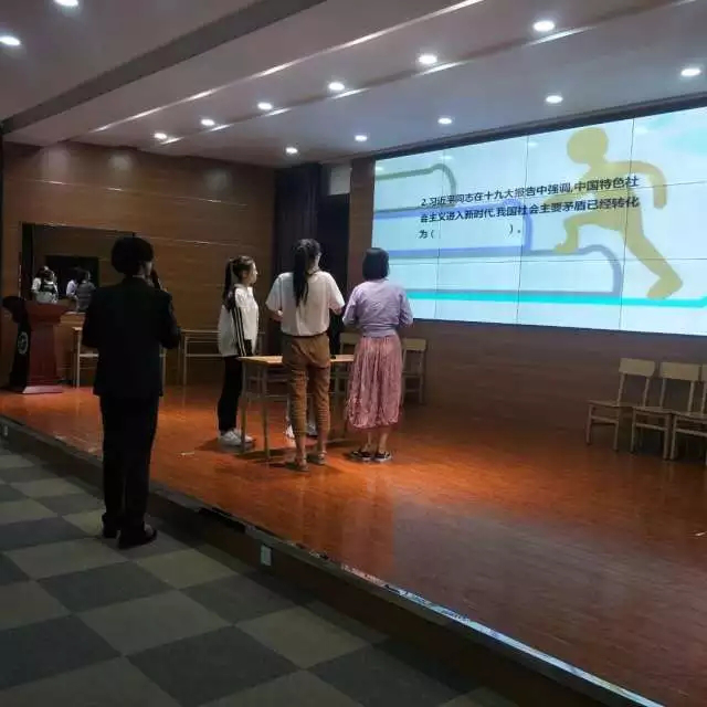 本次比赛分为团体赛和个人赛两种比赛形式,首先是团体赛。团体赛中有四支队伍,团体赛赛制为车轮战,题型分为选择题、判断题和填空题。4组选手两两对决,现场抽签决定PK对象。之后胜者两组与败者两组分别对决,决出名次,共计四场对决。比赛期间,如有选手对某答案有疑问,可举质疑牌示意,由答疑小分队进行答疑。
