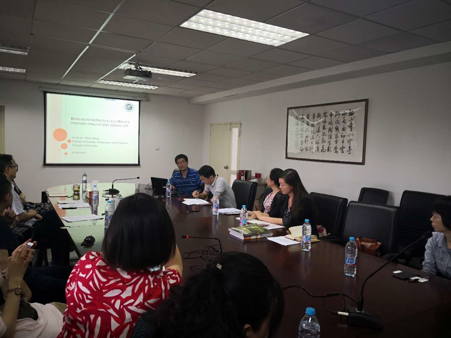 下午,周震院长在同济大学同文楼314室做了题为《Research Methodology: What's Western Philosophy Behind It?》全英文的报告,从西方哲学本体论和认识论的角度揭示了外语研究中常见研究方法论的哲学基础。参加讲座的公英部领导班子成员和骨干教师纷纷表示对其教学与科研具有启发意义。随后,同济大学皇冠体育博彩