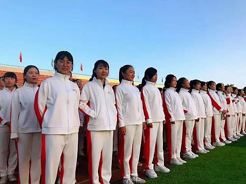 红白相映的院服与绿茵草地构成了田径场上最美的图画,不断变换的队形组成了“宁大”“外院”“60”的字样,别出心裁的同心圆造型赢得了阵阵掌声。