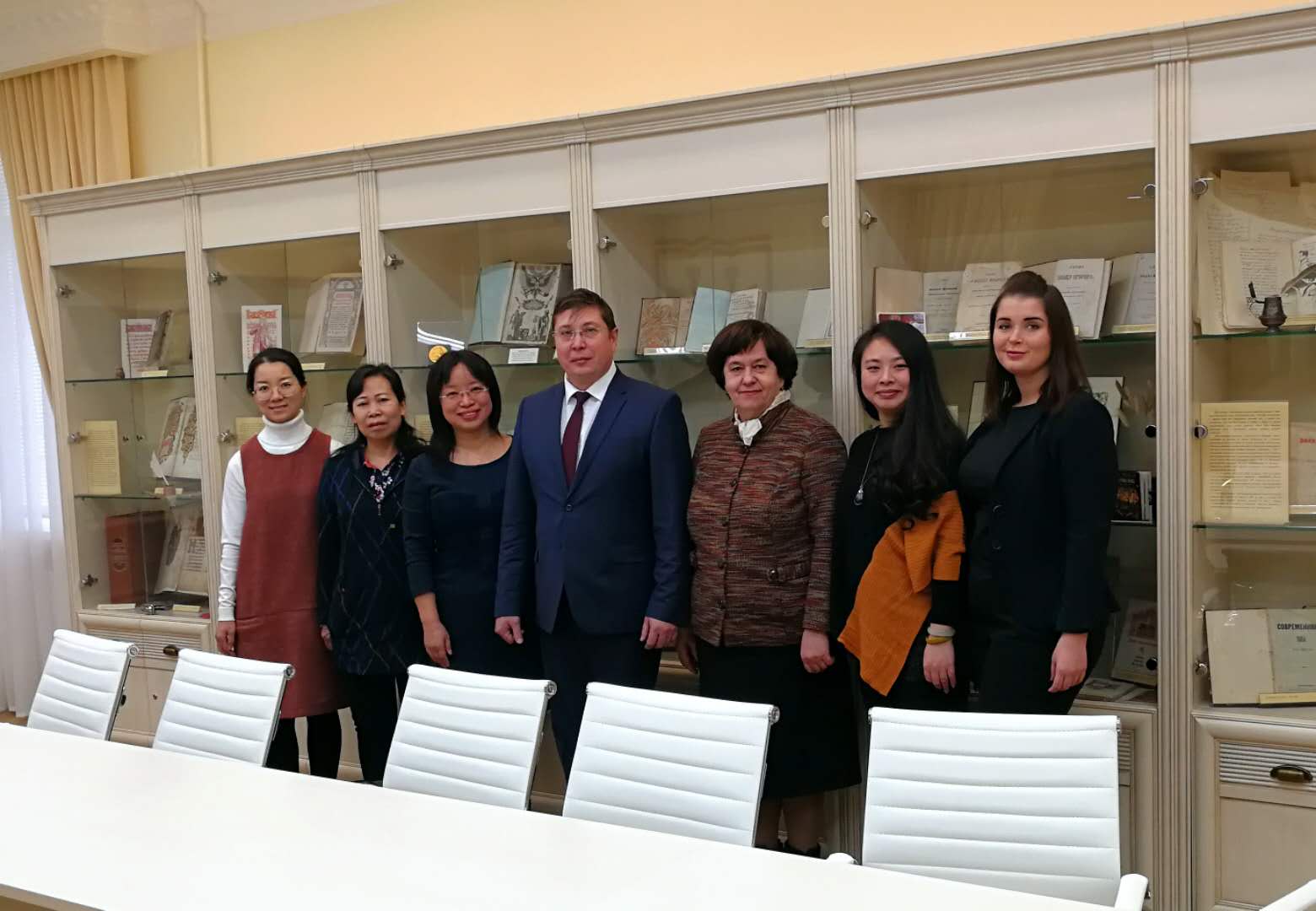 代表团的访问表示热烈欢迎。沃罗涅日大学语言系主任О.А.别尔德尼科娃、沃罗涅日大学中国中心主任Ю.В.斯维塔绍娃参加了会见。双方就目前两校在俄语专业本科生联合培养方面合作的情况进行了深入细致的交流,并表达了对未来进一步开展合作的共同愿望。Д.А.恩多维茨基校长表示,沃罗涅日大学非常重视与中国高校的合作,希望与皇冠体育博彩