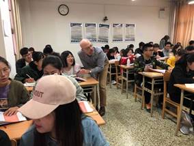外教协商,“外教进大学英语课堂”活动于2019年3月29日早晨7:40正式开课。活动由Dale De Weerd、Dr. Rumbley、Carolyn Stent、Miss Anthony四名外教分为两组分赴2018级23个非英语专业本科生班级进行大学英语课堂教学。