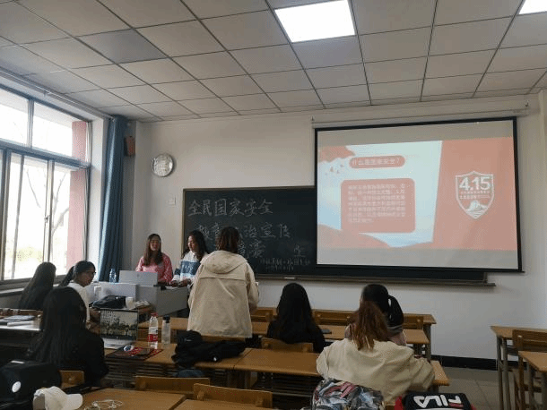活动开始,由主讲同学向全班同学介绍了安全法的发展历程,让同学们对国家安全法有了初步的了解。接着,主讲同学向同学们提出了有关安全法的问题,每一位同学都积极踊跃参与其中,表达了自己的不同想法。最后,为了更好的引导同学们树立总体国家安全观,主讲同学又向同学们播放了有关视频,动画与现实生活的结合,使同学们对国家安全教育有了更深的了解。