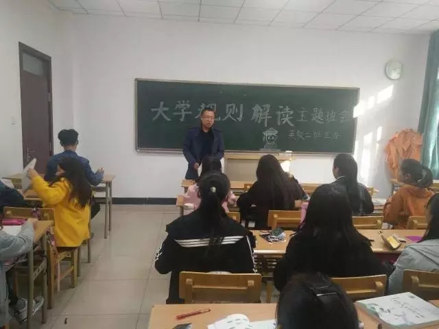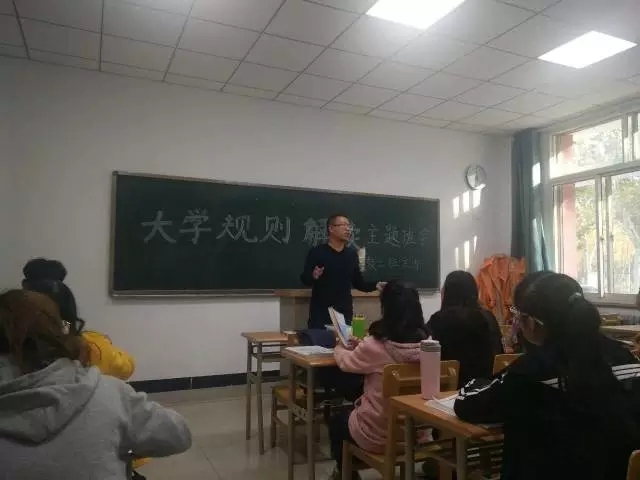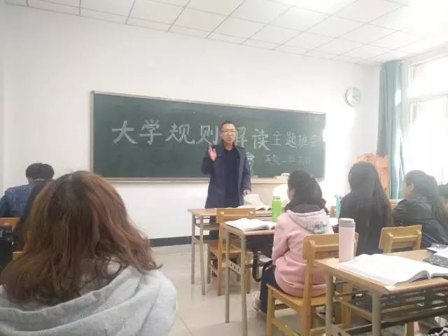 17级英教二班举行了第一次班会活动,主题为大学规则解读。班主任王建刚老师及全体英教二班同学参与了此次班会活动。同学们认真聆听了王老师讲的内容,都感触颇深,受益匪浅。
