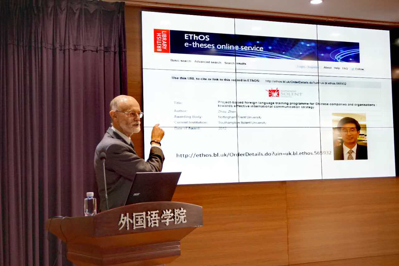 403报告厅做了题为“Learning a Language and Learning to Think: A Game of Snakes and Ladders”的讲座。讲座主要探讨了学生如何在提高自身外语技能的同时训练自己的批判性思维能力以及在大学学习到的技能是否能够运用在未来的工作当中。同时,Colin Beaven教授向老师及学生推荐了剑桥大学出版社出版的《Unlock》教科书,为如何训练学生的批判性思维提供范例。