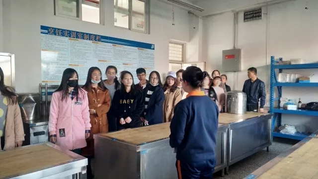 的基本情况,并带领志愿者参观了他们的烹饪实训室、现代服务班、平面制作室和干净整洁的宿舍。