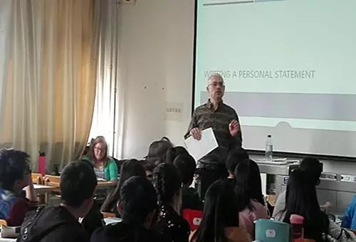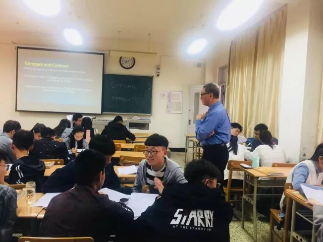 外教协商,“外教进大学英语课堂”活动于2018年3月28日早晨7:40正式开课。活动由Dale De Weerd、Sarah Beth Harmon、Carolyn Stent、Bob Cheah四名外教分为两组分赴2017级非英语专业本科生的大学英语课堂进行教学。