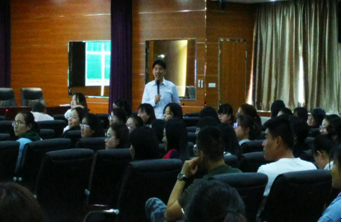 3月30日北京外国语大学的陈崛斌、王文丽和翟铮老师分别走入17级、16级和15级的课堂中,为各班同学讲授了专业核心课《基础英语》、《语音》课,语言技能课《写作》、《听力》课和专业必修课《文学》、《翻译》课。《基础英语》课上,陈老师将大家带入公元前 4世纪亚历山大国王和古希腊哲学家戴奥吉尼斯的会面中,并引导我们对比两位伟大的历史人物在装扮、性格,思想等方面的不同,使大家对犬儒主义有了深入的思考。王老师在《语音》课上,选取了许多贴近生活的音频、影视素材,还融入了儿歌、游戏等教学方法,即简单、有效地训练学生掌握了重读、节奏和连读的要领,分析了汉语的负迁移问题,还讨论了诗歌的主题巧妙地融入在韵脚中的规律及特点。