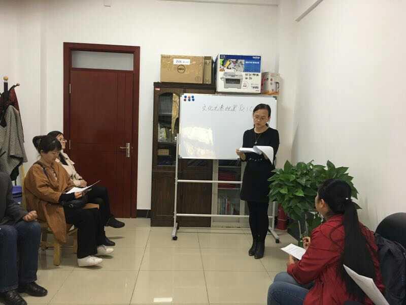 这次活动主要是由公外部的韩芳老师给大家分享她的自治区高校教改课题“大学英语教材的文化元素配置与学生跨文化交际能力培养的适应性研究”的成果。该课题主要就大学英语教材中本族语文化与目的语文化配置的合理性、本族语文化配置的不足对学生跨文化交际能力的影响以及如何解决目前的大学英语教材中中国文化元素失衡的现象展开研究,并就推进文化教学、教材的二次开发、更新教师观念、调整教学方法以及完善课程体系等几个方面提出了自己的见解。韩芳老师提出:大学的外语教师应该成为具备双语言、双文化、双思维方式,双生活方式的教师,以适应新时代发展的需求。