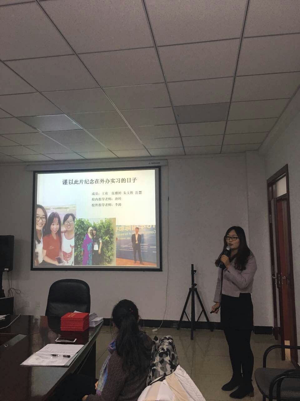 为2015级翻译硕士34名学生安排的宁夏回族自治区外事办公室、宁夏旅发委、宁夏外专局、宁夏誉景食品有限公司等12家实习单位。学生实习汇报环节,在自治区旅发委、誉景食品有限公司、译博雅翻译公司和自治区外办实习的四名同学分别从实习单位介绍、实习过程、实习收获、存在的不足和今后努力方向等5个方面进行了详尽而生动的汇报。四名同学首先感谢皇冠体育博彩