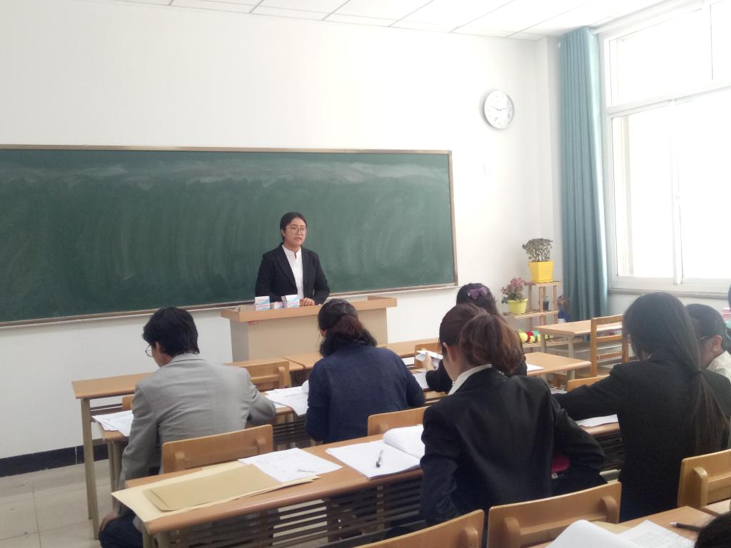 答辩会开始之前,英语系刘燕老师对答辩小组人员组成、场地设置和答辩过程细节进行安排与调整。