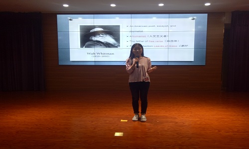 赛前,赵晓佳老师以亲身经历诠释了诵读诗歌的意义、举办朗读比赛的作用。诗歌作为文化经典,传承着历史文化与时代内涵。当同学们以准确的语音、语调诵读作品时,能真切体会到语言的优美,并激发学习语言的乐趣。举办朗诵比赛,让外文经典回归校园,彰显现代大学生的朝气与才华。