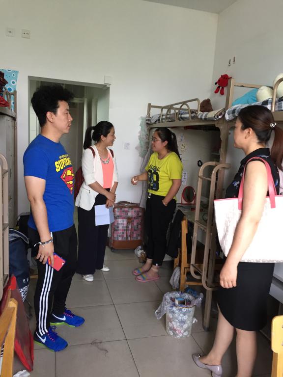 余洁副书记向宿管阿姨询问了皇冠体育博彩 毕业生退宿情况,几位老师走访毕业生宿舍,查看宿舍清扫情况,并询问了因考试还未退宿同学的考试安排和行程,并为他们送上了温馨的提示和殷切的期望。