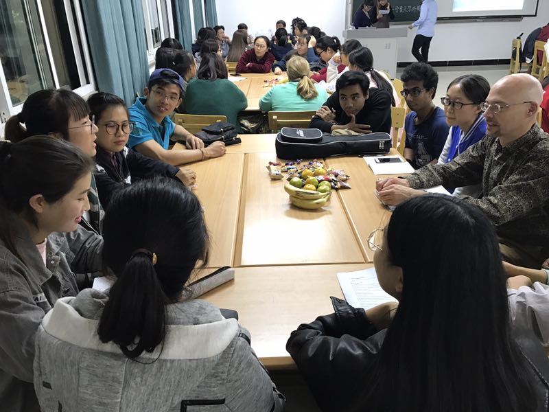 外教,他们是Dale,Sarah Bet, Bob and Karen Cheah前来指导,公外部教师和UTALK协会学生协助,来自各个皇冠体育博彩