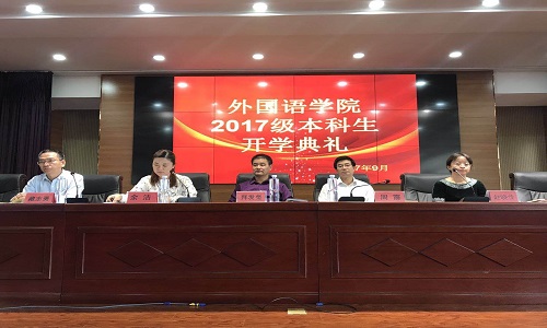 关于聘任宋晓龑等八名教师担任2017级兼职班主任的决定》,并由院领导向老师颁发聘书。紧接着,2017级英语专业学生陆美彤同学代表2017级新生发言。在发言中,她表达了自己对大学生活的美好期盼和入学感想,并向同学们发出“团结同学,尊师向学”等倡议。随后,由2014级英语专业学生、院学生会副主席刘淑君代表老生发言。她讲述了自己的心得体会并对新生送出美好祝愿。紧接着,教师代表金丽华老师发言。她以流利的英文向新生表示欢迎,在发言中,她说到“They say a person needs three things to be truly happy in this world:someone to love,something to do,and some vision to hope for.”令大家陷入沉思,受益匪浅。