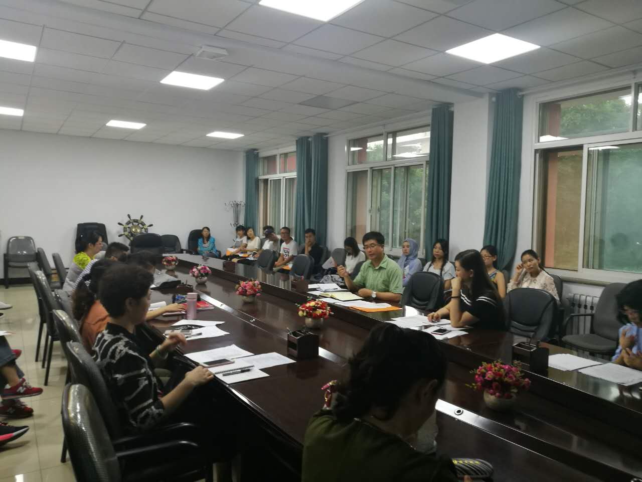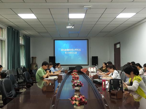 于2017年7月5日下午3点在二楼会议室召开了2016级翻译硕士学生实习动员大会。周震院长、朱海燕副院长、全体实习指导教师以及2016级口笔译研究生参加了此次会议。