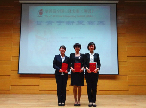 翻译硕士口译方向研究生冀晓丽、张洁、苏楷婷参加了在兰州举行的第四届中译杯全国口译大赛甘宁青新赛区的比赛。冀晓丽和张洁同学分别获得本赛区的一等奖和二等奖,成功晋级大区赛;苏楷婷同学获得优胜奖。三位选手的指导老师分别为外院翻硕导师周玉忠、瞧秀梅和朱海燕三位老师。