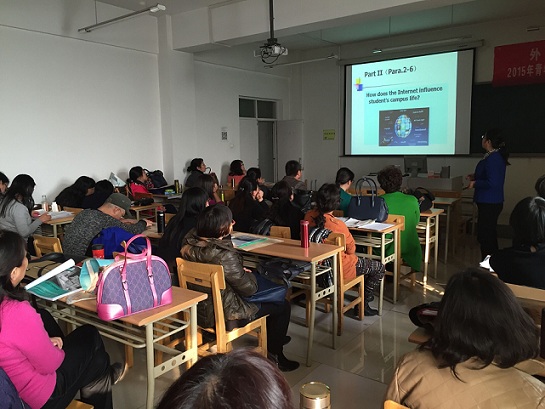 在公开课教学活动中,王晓军、李天紫、殷昭琴、张静、王燕五位老师利用多媒体教学手段分别做了20分钟的公开授课。五位教师教学目标明确、重点难点突出、课堂气氛活跃、课件设计新颖,教学风格各有特色,能够结合不同类别学生的英语水平要求进行英语教学,教学效果较好。教学活动结束后,公外部的教师们纷纷踊跃发言,对各位教师的教学进行了评议,在肯定各位老师授课优点的同时,探讨了教学过程中遇到的具体教学问题。听课教师一致认为在此次公开课活动中受益匪浅,同时还促进了教师们之间的交流,为提高大学英语教学水平提供了交流平台。公外部公开课活动取得了圆满成功。