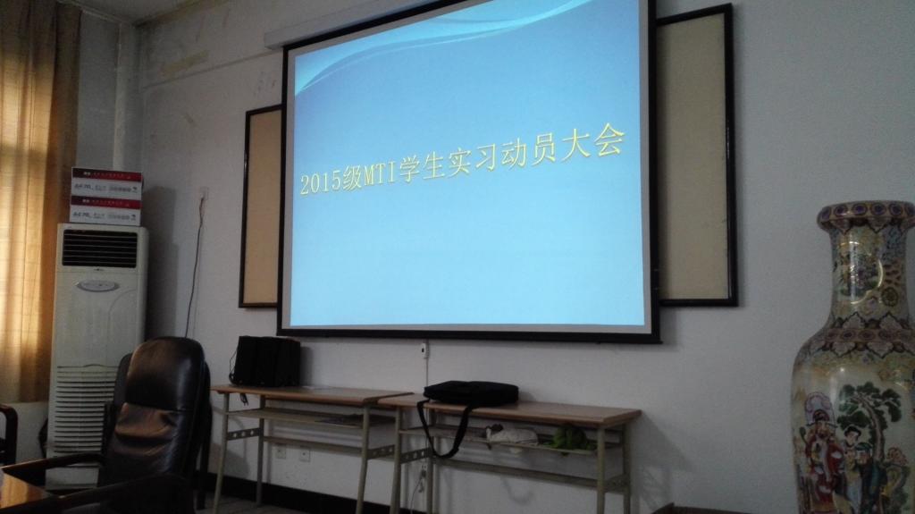 于2016年6月12日下午3点在二楼会议室召开了2015级翻译硕士实习动员大会。副院长唐玲、研究生部副主任贾文娟及部分实习指导教师和2015级全体翻译硕士学生参加了会议。