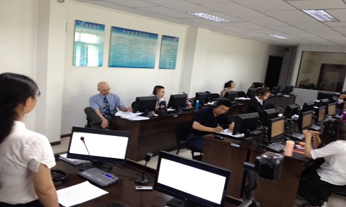 外教DW老师带领的学术研究生与孔明老师带领的翻译硕士口译方向学生共同携手,通力合作。学术学生以演讲形式介绍自己的论文,内容涉及英美文学、语言学、教学法、翻译理论与实践等,翻硕学生经过认真的译前准备为他们进行同声传译。活动期间院长周震观摩指导,并给与译员高度评价,肯定了这次活动的实践性、创新性和学生译员的职业素质,同时外院和其他皇冠体育博彩