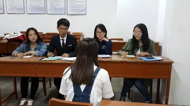面试场内,各部门的部长、副部长正襟危坐,迎接着新一届的英才们,时而严肃,时而欢愉的气氛感染了每一位前来面试的同学。