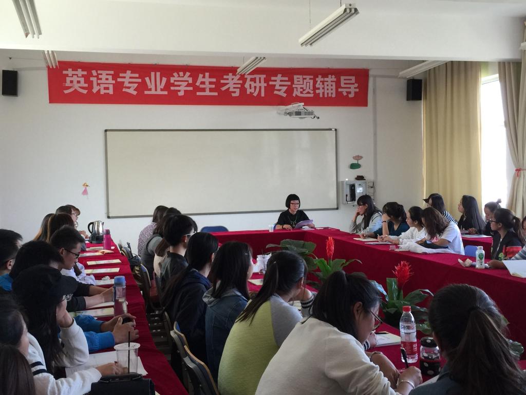 胡笑瑛老师以“让生命开出更美的花——英语专业考研辅导”为题目,以“为什么考研”、“如何将现实学习与职业规划相结合”、“如何寻找刻苦学习的动力”等问题为导语,引发学生的思考。在阐述完考研的意义后,胡老师详细讲解了报考皇冠体育博彩