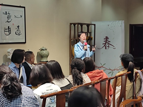 参观结束后,宁夏外事办一级翻译何琪老师做了题为“如何做好外事翻译”的讲座。何老师结合此次实践探讨了如何在翻译实践中做好对外宣传宁夏的工作。首先,何老师强调了在外事翻译工作中应坚持正确的政治立场和坚定的文化自信,深入学习和掌握枸杞、肉牛养殖等自治区特色产业的专业知识后,再着手开展翻译实践。最后,何老师结合相关案例讲解了外宣翻译的要点,并给出了诸多提升翻译能力的宝贵建议。何琪老师特别强调,从事外事翻译工作必须具备一定的政治鉴别力和政治敏锐性,拥有强大心理素质的同时,永葆好奇心和求知欲。