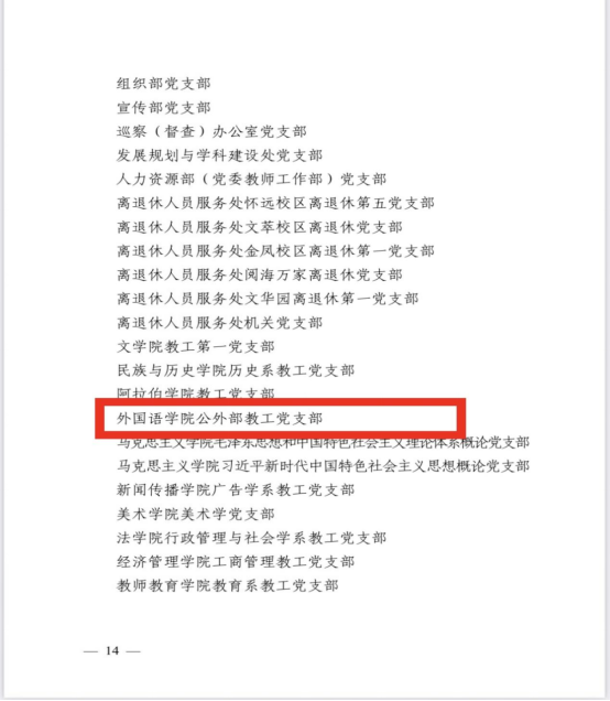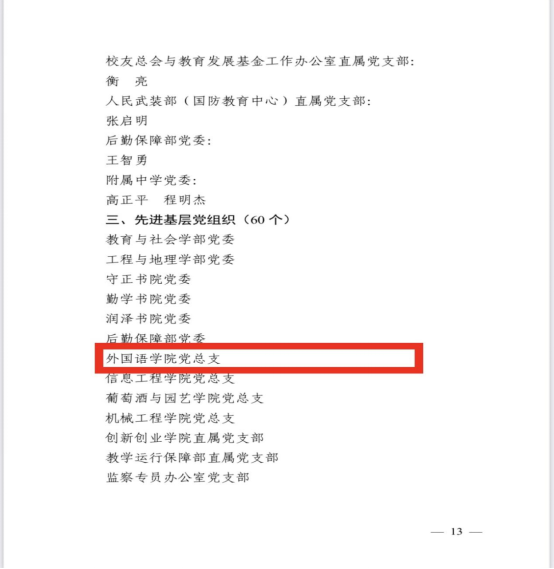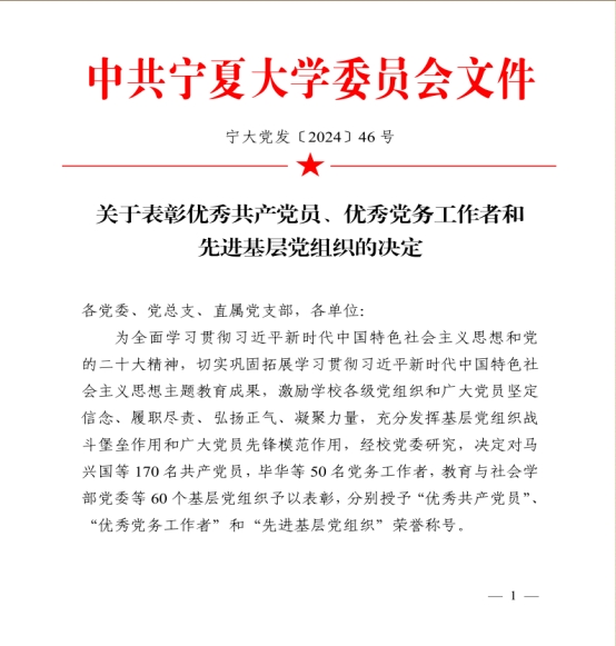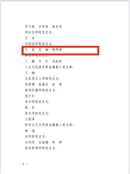 2024年6月28日,皇冠体育博彩 在贺兰山校区笃行楼一楼报告厅召开“七一”表彰大会,皇冠体育博彩 党总支、皇冠体育博彩 公外部教工党支部获得先进基层党组织荣誉称号,胡笑瑛、王晶、吴楠三位教师获得优秀共产党员荣誉称号。
