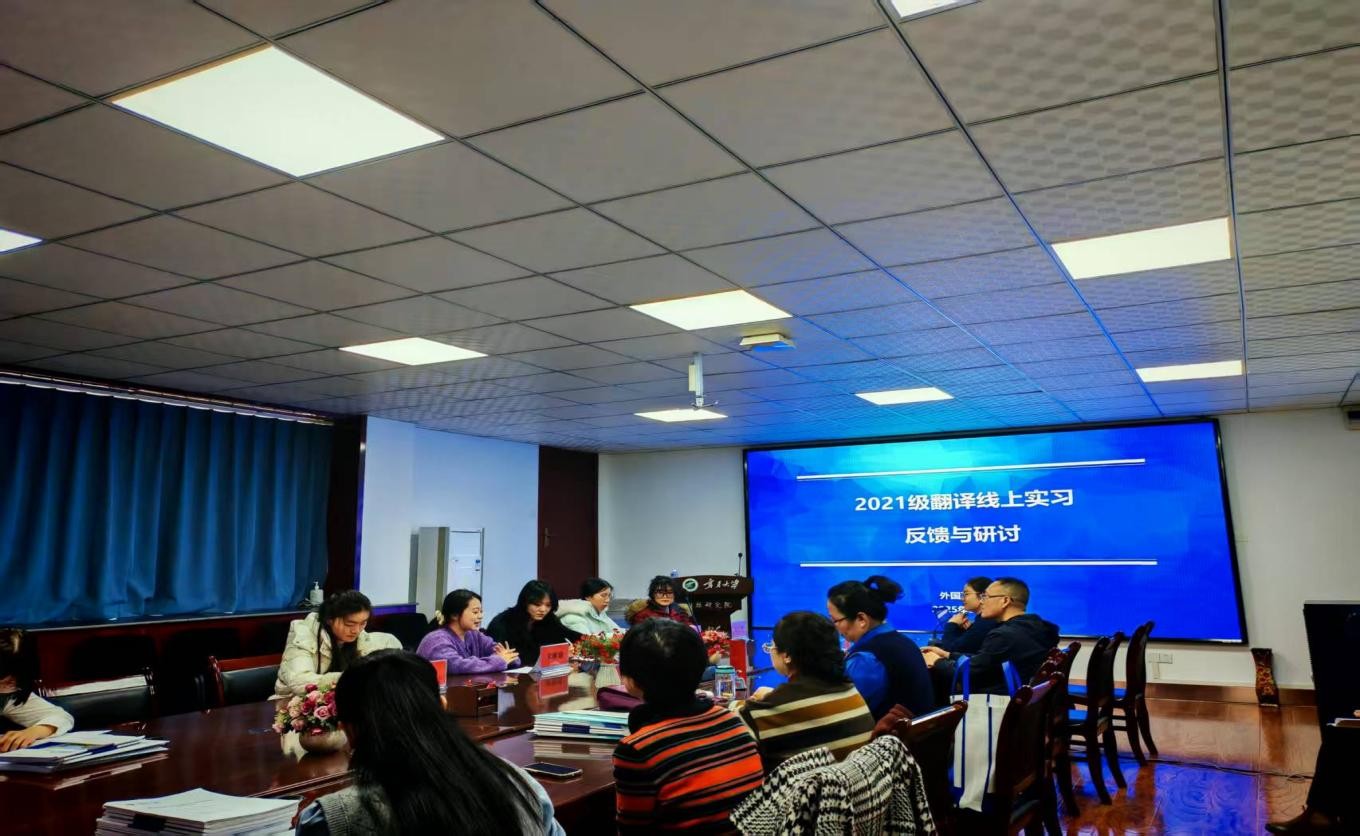 2025年3月5日下午,英语系在逸夫楼309会议室召2021级英语翻译方向学生实习总结暨校企合作研讨会。会议由贾文娟副院长主持,郭季虹老师协助组织,翻译线上实习生、翻译口笔译教师及实习指导教师共同参加。