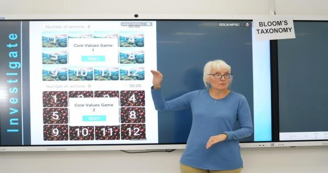 工作坊以问题为导向,基于促成式教学理论,设置了环环相扣的探究环节。Melissa老师通过提问引导同学们理解布鲁姆教育目标分类理论(Bloom's Taxonomy),随后结合自身教学实践,演示了如何将该理论中的方法与工具有效运用于英语课堂。最后,她组织同学们进行个人学习效果评估,并启发大家思考如何将所学应用于未来的教学实践。