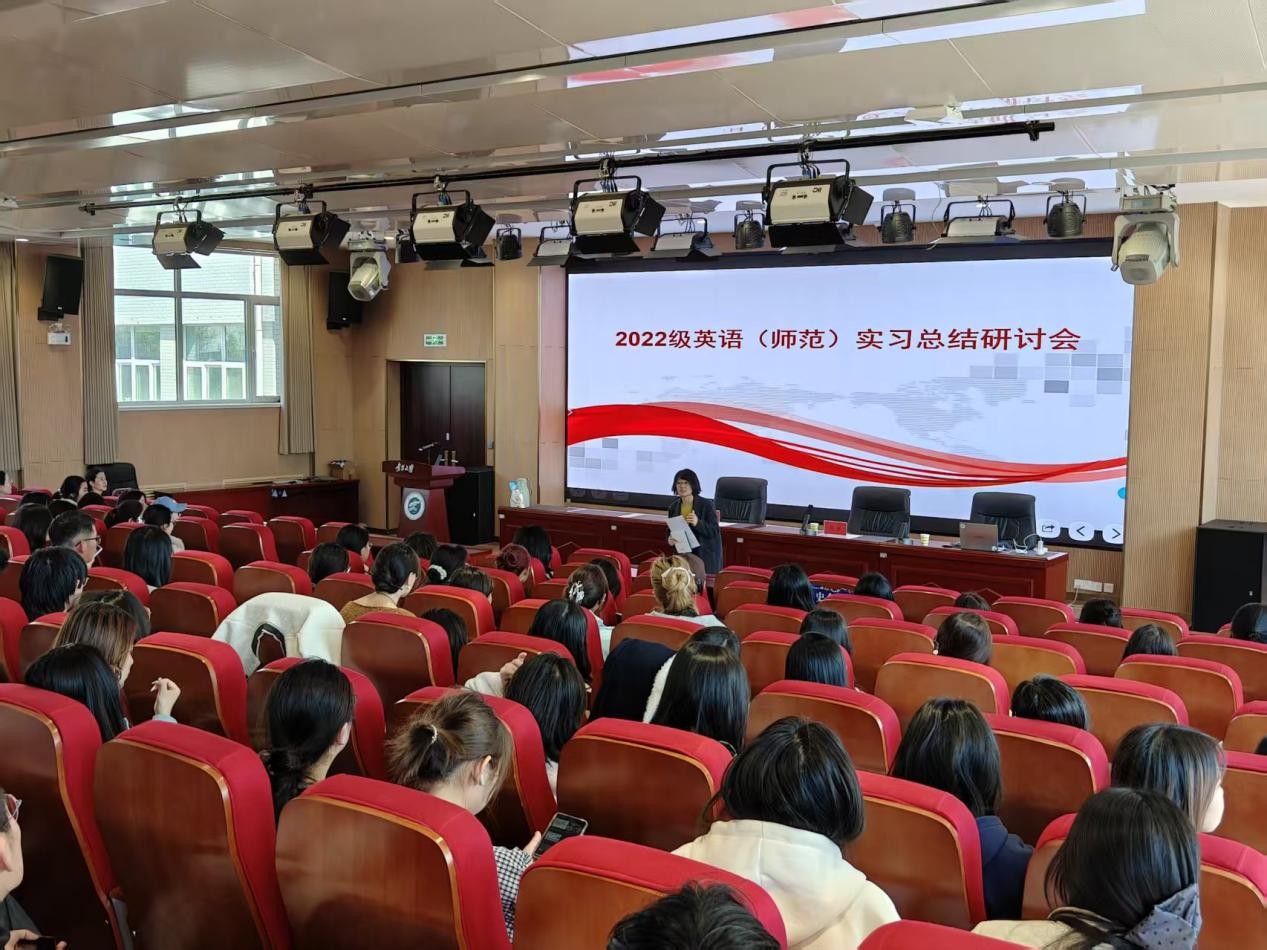 会上,贾文娟首先介绍了本次实习总结研讨会的目的与意义,梳理了2022级英语师范实习的整体情况,并详细说明了2022级与2023级的实习安排,明确了不同阶段的实践目标与成长要求,为即将步入实习岗位的2023级师范生搭建了清晰的行动框架,也使在场师生对师范专业人才培养有了更深的理解。