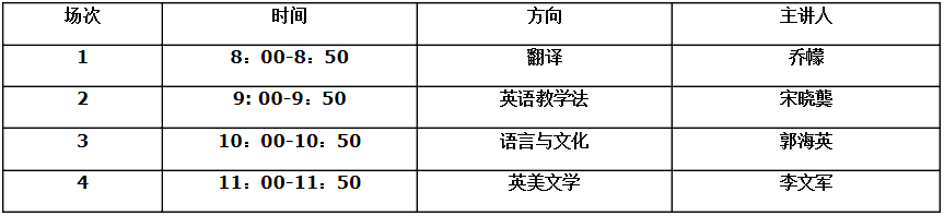 2. 兹定于2017年6月29日(星期四)上午为英语专业2014级同学举办本科毕业论文选题指导讲座。地点在403报告厅。具体时间安排如下: