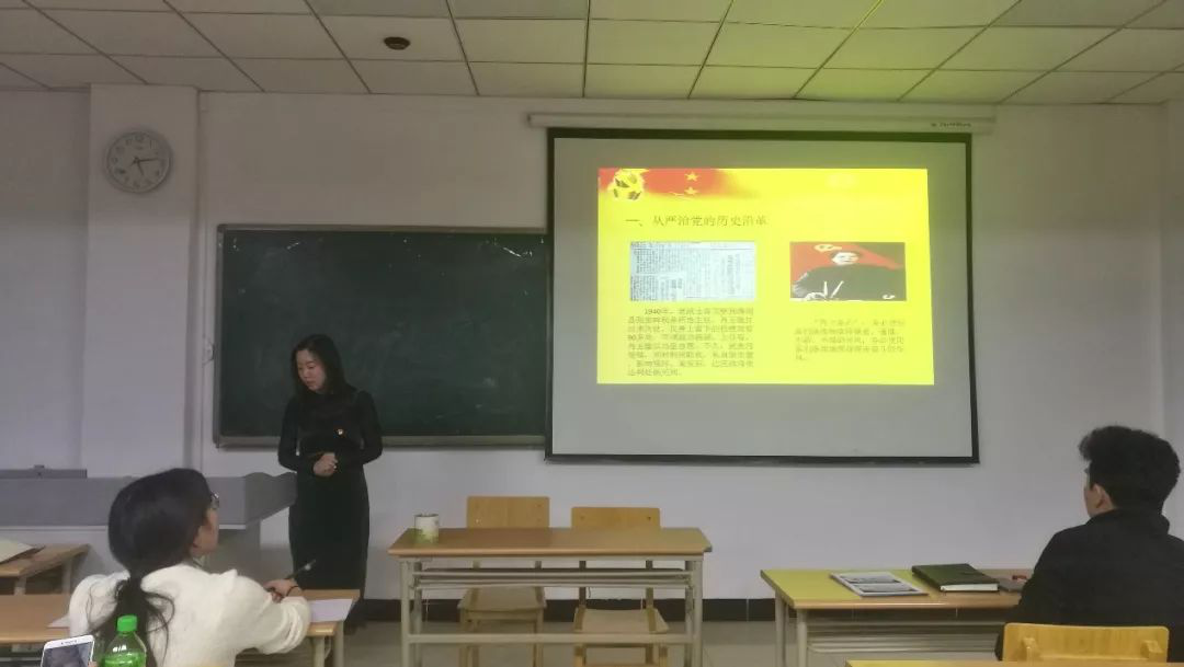 会议第一项是由英语专业党支部书记郑轶和英教专业党支部书记徐洋分别进行对宪法修正案的解读。他们分别从宪法修正案的概述,十二个方面的主要内容和宪法序言部分的修改等方面阐述了宪法修改的重要内容及重大意义。