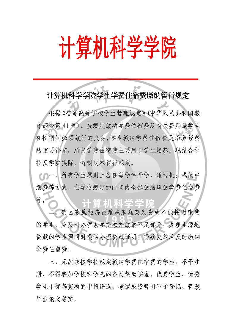 计算机科学皇冠体育博彩 学生学费住宿费缴纳暂行规定