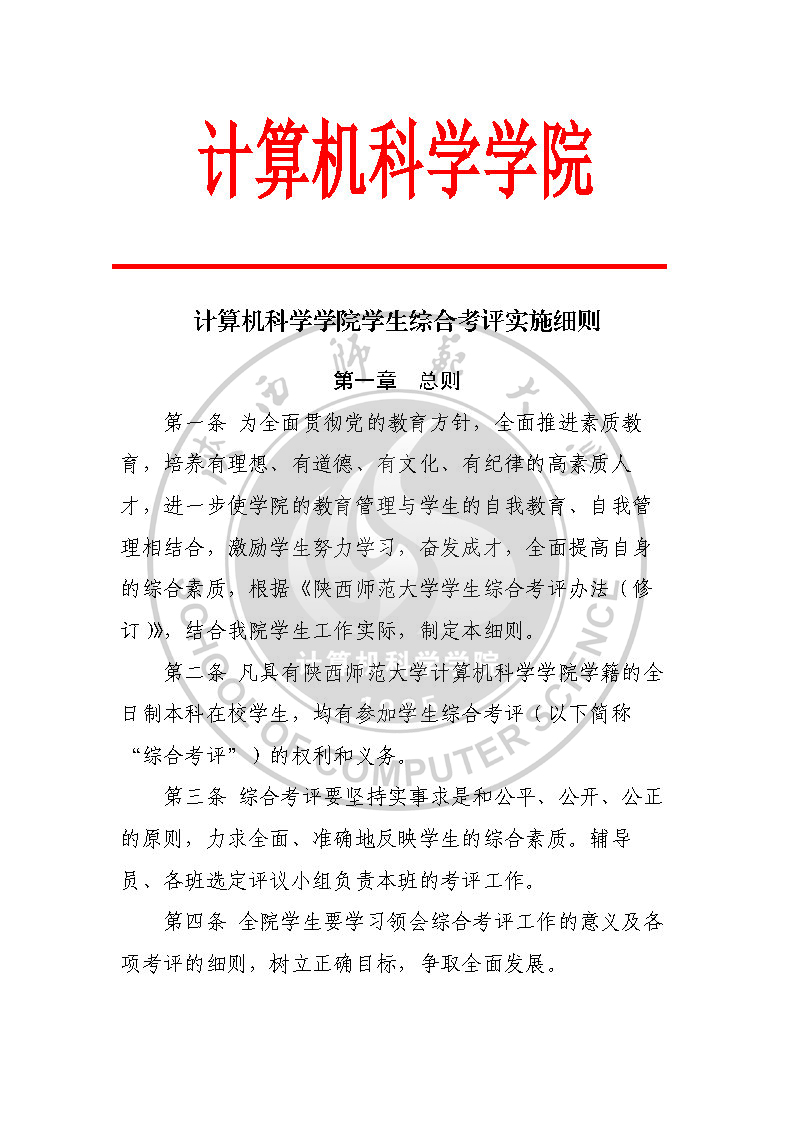 计算机科学皇冠体育博彩 学生综合考评实施细则
