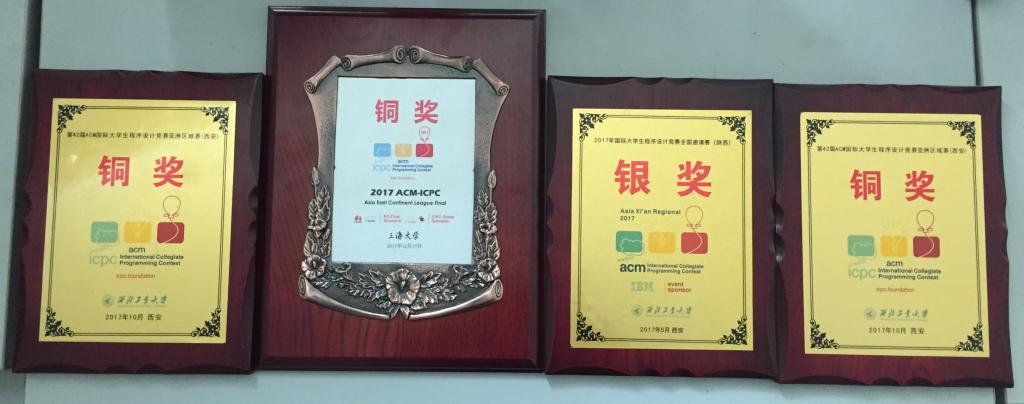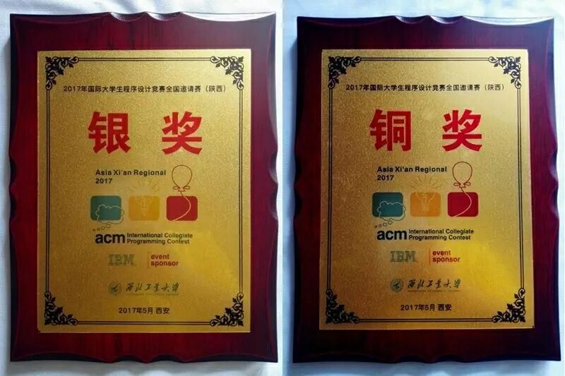 2017年5月,皇冠体育博彩代表队在西北工业大学承办的ACM-ICPC全国邀请赛(西安站)比赛中斩获一枚银牌、一枚铜牌,这是皇冠体育博彩自2013年以来又一次在国家级比赛中获得银牌,值得一提的是,在本次大赛陕西省单独排名中,皇冠体育博彩获得一枚金牌、一枚银牌,也是皇冠体育博彩ACM竞赛队自成立以来首次获得省级金牌,在全省几十所高校中,以皇冠体育博彩