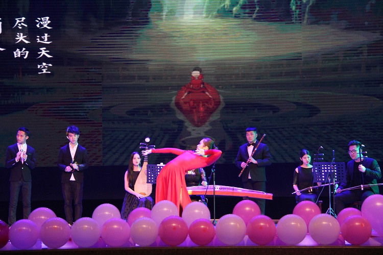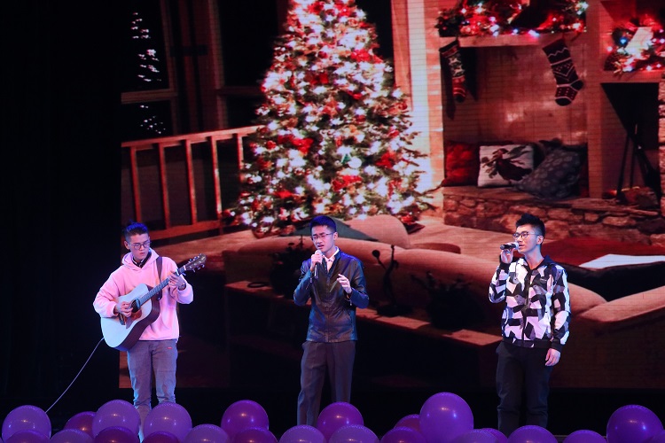 黄昭、马苗、田丰、杨婷等教师及15级计创班全体同学组成,他们饱含热情,充满希望,令人荡气回肠的一句“我们的大中国呀,好大的一个家”,让在场观众的民族自信油然而生。由曹旭东和杨思誉同学带来的相声《非常访谈》用幽默诙谐的台词告诫同学们,当代大学生需学有所成,勿成“砖家”。流行歌曲《修炼爱情》配上了古典的舞蹈,现代与古风的结合成为这个节目的一大亮点,令观众赞叹不已。各种古典乐器和钢琴合奏的《大鱼》韵味盎然,博得了台下阵阵掌声,这个节目让我们看到,中国文化博大精深,在数千年的发展中日益璀璨,备受世界各国人民、当代青年瞩目。由宋星辰、宋澳华、张雅楠等同学带来的风趣幽默的小品《人生自古谁无死》揭示了人生在于奉献的真谛,赞扬了勇于奉献、顽强拼搏的高尚品质。紧接着文根峰、邓乐涛、陈援、李文佳、郝佳琪等的阿卡贝拉《five hundred miles》、《That's Christmas to me》不仅调动了全场欢快活跃的气氛,还唤起了不远万里来师大求学的莘莘学子思乡之心,为新的一年的到来增添温馨和感动。由米智、杜婉宁、梁啸、杨佳颖、赵雨晨表演的《春风十里&Yellow》给全场同学们带来了一场悦耳动听的视听盛宴。