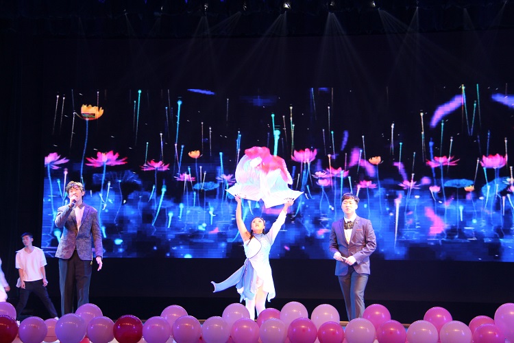 党委副书记袁冰老师带领下的学工组集体为大家带来了《你的导员我的秀》表演,展示了辅导员的工作日常,台词幽默风趣,全场掀起了一轮辅导员表白热潮,节目对消防安全、考研就业等学生关注的问题提出了独特的见解,也对皇冠体育博彩