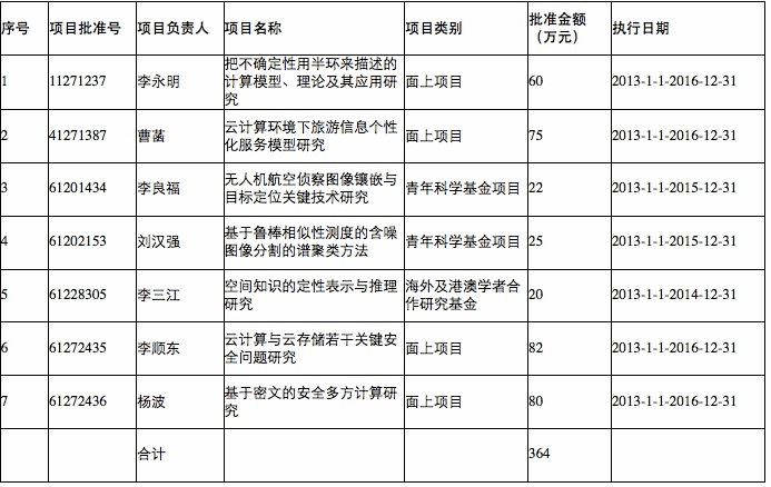 2012年度皇冠体育博彩 国家自然科学基金资助项目清单