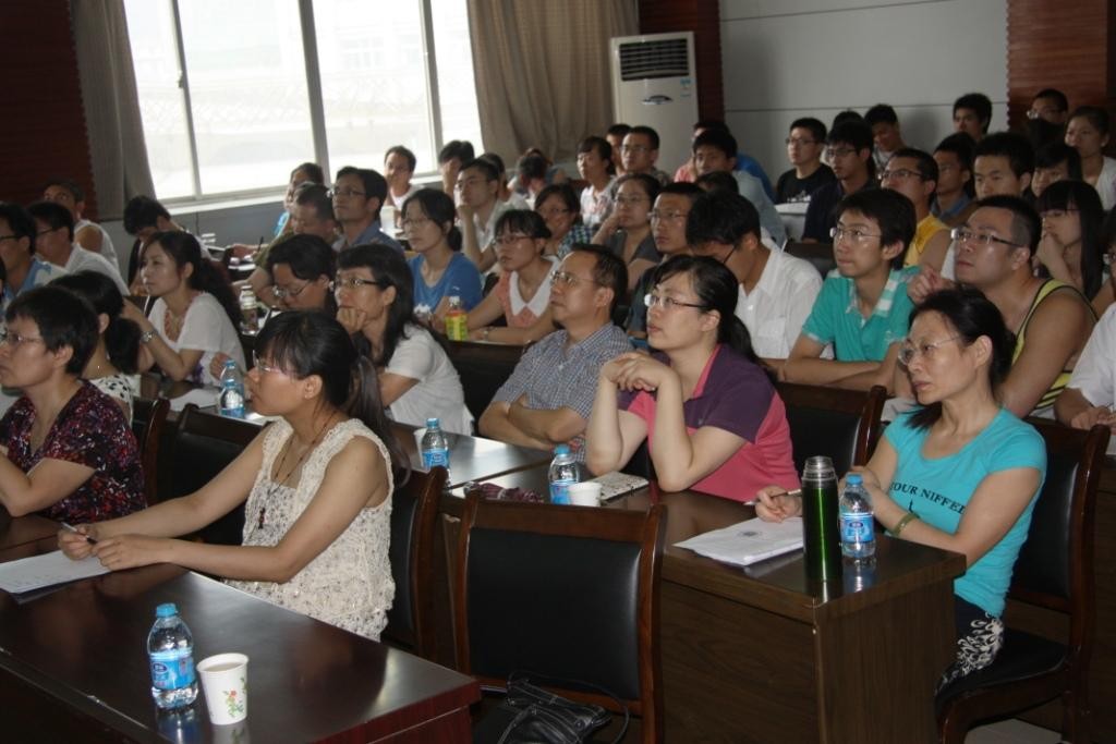 所有师生向张教授的到来表示热烈的欢迎。报告中,张教授首先讲述了为什么社会网络、蛋白质相互作用(PPI) 网络要使用基于图的模型以及其上的数据挖掘方法。接着提出了目前此类网络研究中的两大挑战:一是如何从网络中提取对象的作用,二是如何将网络的动态特性整 合到所提出的模型中。之后阐述了动态网络的模型构建以及靶标分析与预测框架。在阐述了功能流方法后,给出了模块强度的概念、量度以及推演。最后结合基因表 达和PPI网络的研究,描述了构建动态网络的方法。