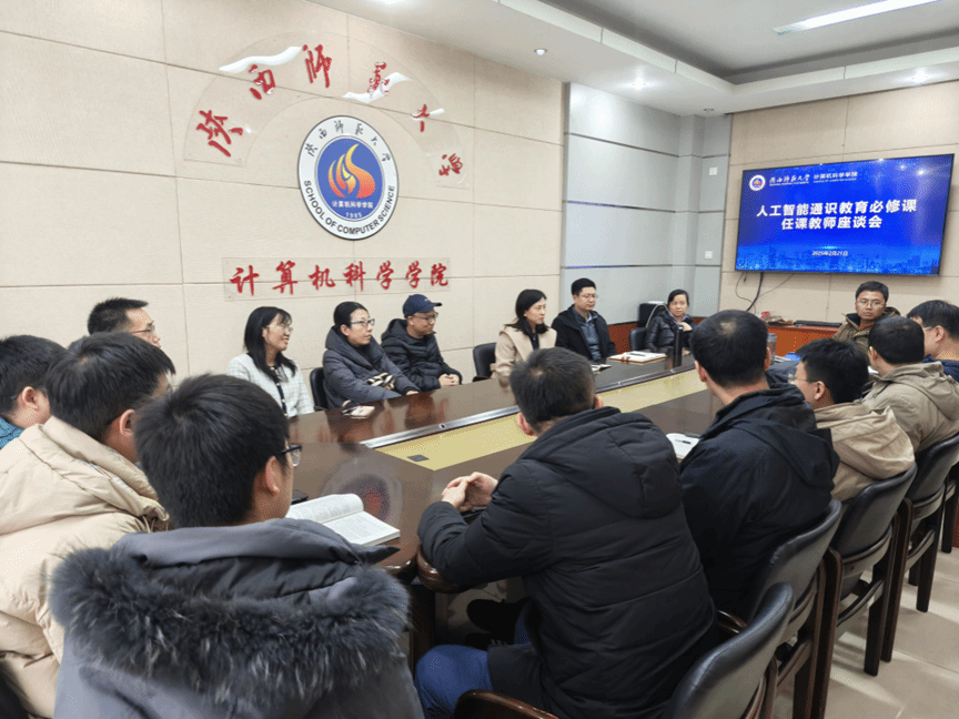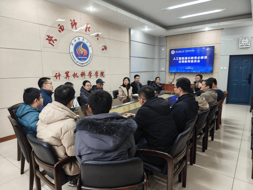 于2025年2月21日下午在长安校区文津楼3431会议室,组织召开了人工智能通识教育必修课任课教师座谈会。会议由院长姚若侠主持,教学副院长李鹏、通识教育课程群负责人马君亮以及《人工智能开发实践》通识教育必修课全体任课教师参会,座谈会围绕课程改革与教学质量提升展开深入交流。