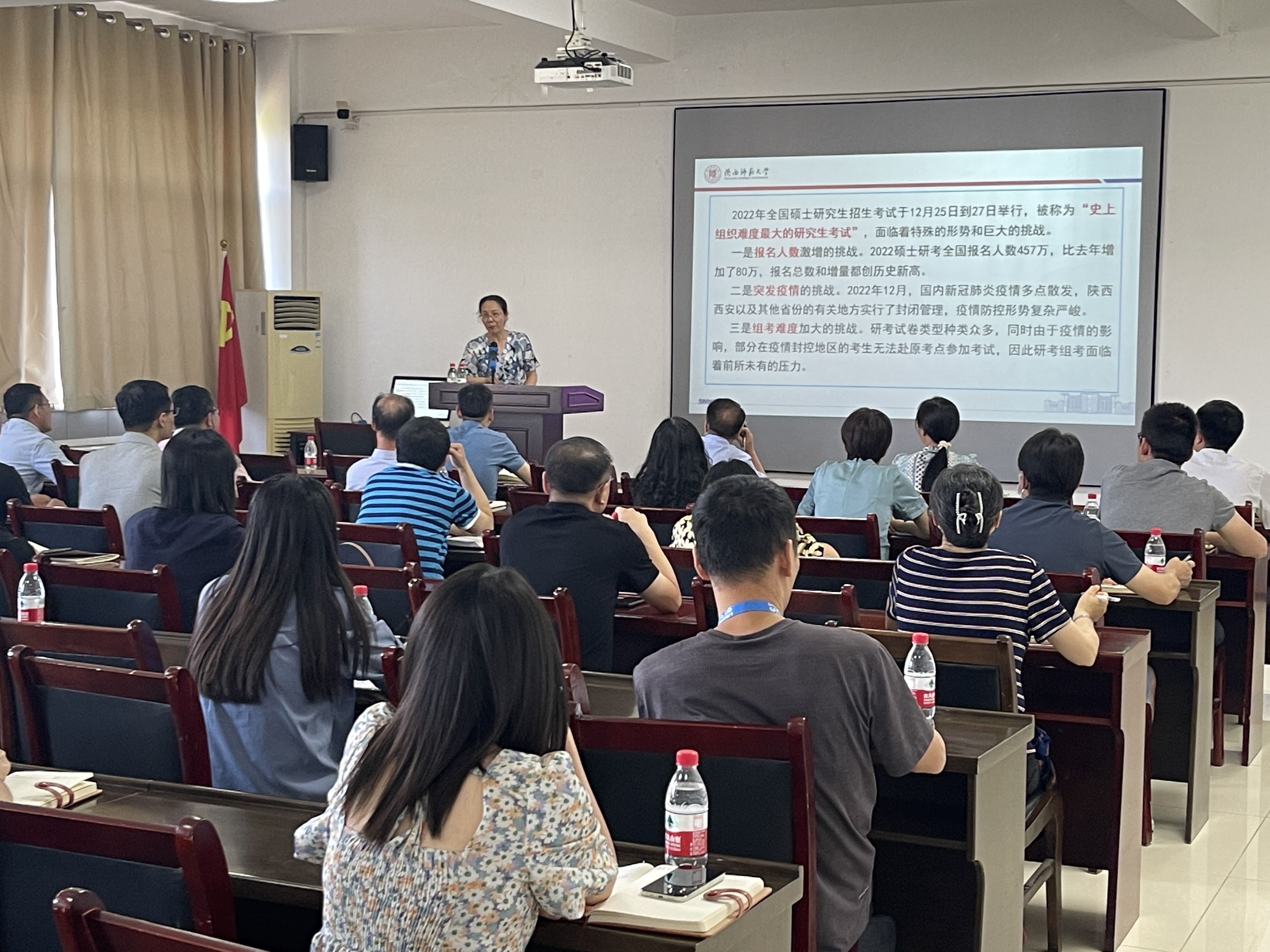 杨祖培从2022年全国硕士研究生招生考试这一“史上组织难度最大的研究生考试”展开,介绍了为实现“应考尽考”和“平安研考”的目标,皇冠体育博彩与社会各界通力合作,众志成城,迎难而上的奋战历程。此次研考工作的复杂性超乎想象,全校参与研考工作的1500余名教职工、皇冠体育博彩