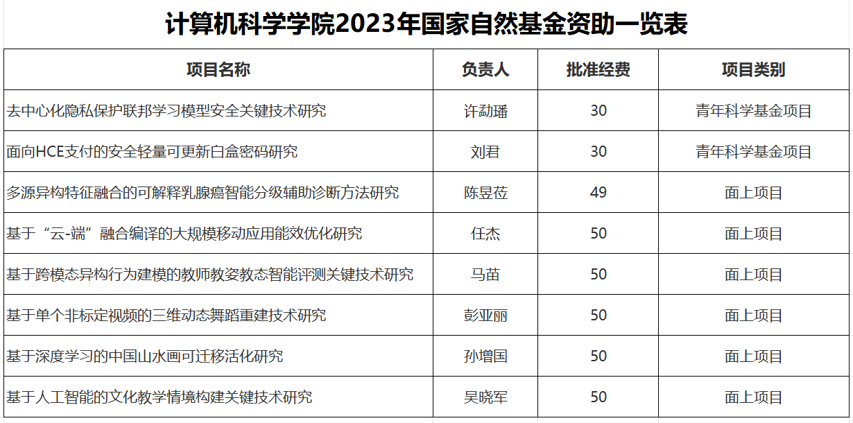 近日,国家自然科学基金委员会公布了2023年度国家自然科学基金申请项目评审结果,皇冠体育博彩 8个项目获得资助,资助总经费359万元,包括青年科学基金项目2项,面上项目6项。