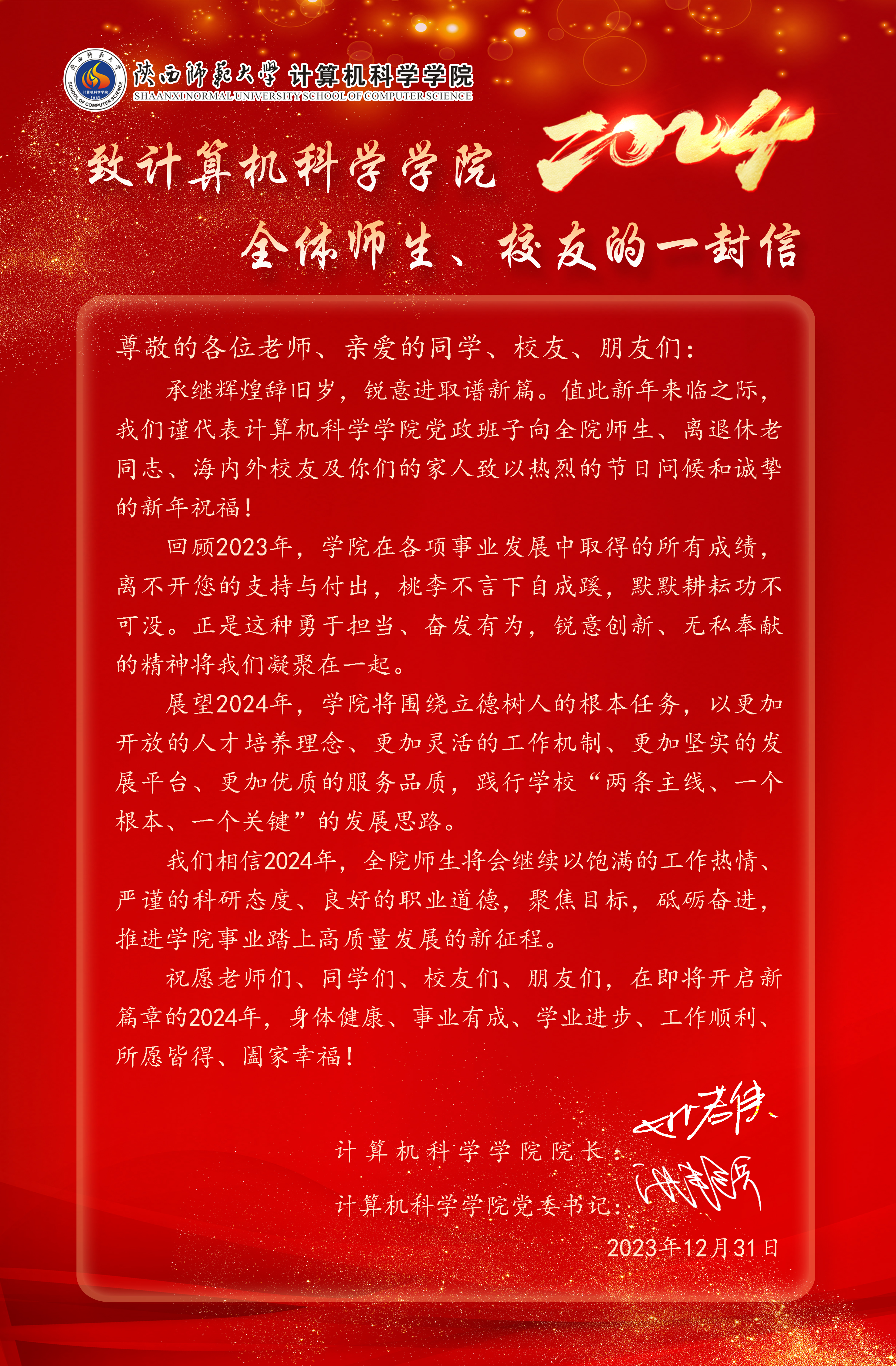 致计算机科学皇冠体育博彩 全体师生、校友的一封信