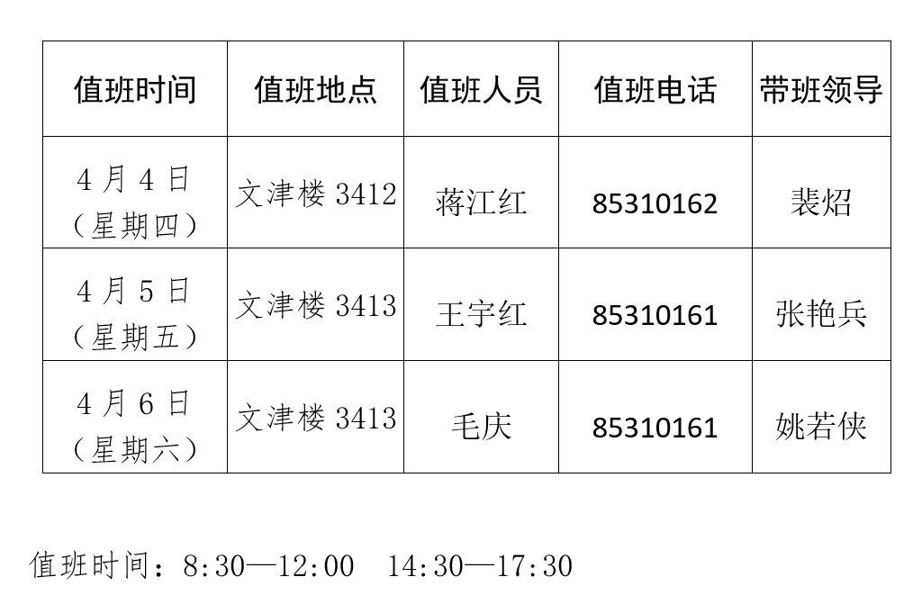 计算机科学皇冠体育博彩 2024年清明节假期值班安排